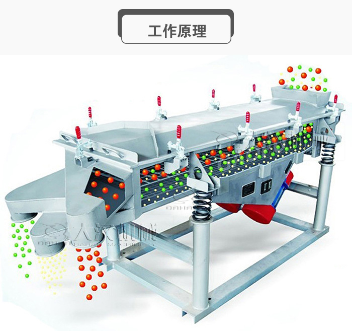 多層直線振動篩的驅(qū)動力是雙振動電機(jī),依靠振動電機(jī)產(chǎn)生的激振來開展作業(yè),篩機(jī)的運(yùn)動軌跡是一條直線,在振動力和物料的雙重作用下,將篩面上的物料拋起向前做跳躍式直線運(yùn)動,從而正確契合網(wǎng)篩進(jìn)行多層篩分。