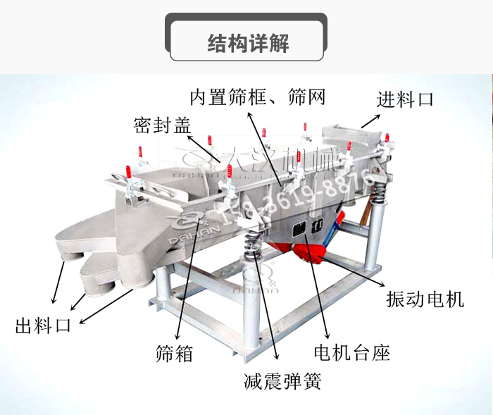 多層直線篩結(jié)構(gòu)與直線篩結(jié)構(gòu)一樣,主要由篩箱、篩框、篩網(wǎng)、振動電機(jī)、電機(jī)臺座、減振彈簧、支架等組成。