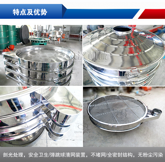 食品振動篩主要用于食品行業(yè)對面粉、淀粉、食鹽、米粉、奶粉、豆?jié){、蛋粉、醬油、果汁等物料進行篩選和過濾。