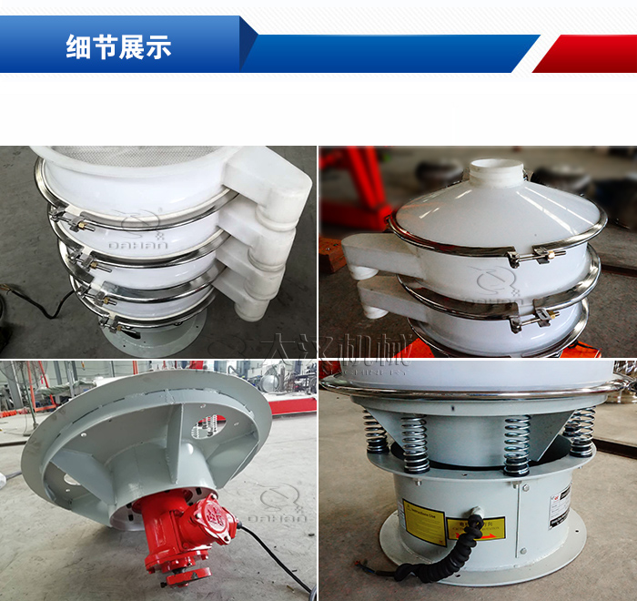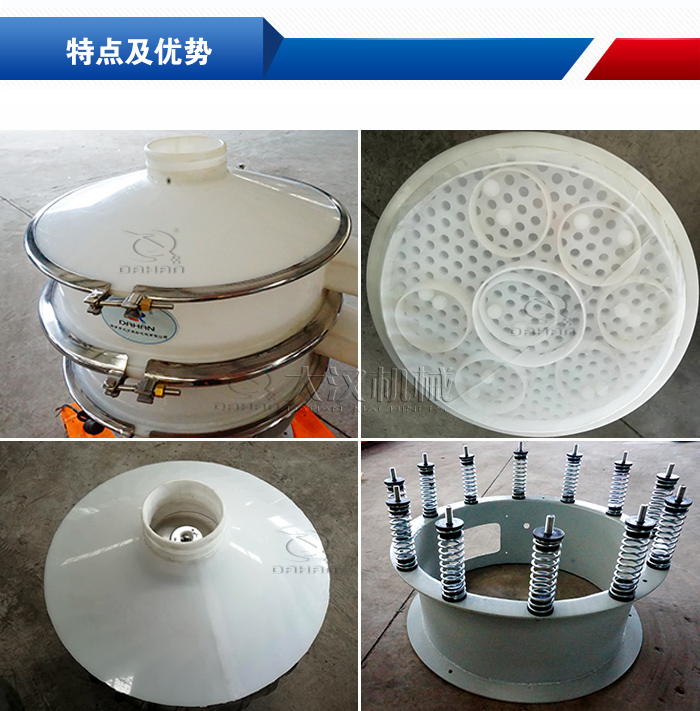 化工振動(dòng)篩是特殊性、高粘度、細(xì)粒物料篩分過(guò)濾設(shè)備,又叫化工耐腐蝕振動(dòng)篩,主要用于篩分各種化工物料,細(xì)粉、微粉、及干、濕物料等,適用于酸性、堿性、油性等化工生產(chǎn)。大漢化工振動(dòng)篩篩分細(xì)至500目或0.028mm,過(guò)濾小可至5微米??裳b一至五層篩網(wǎng),能同時(shí)對(duì)二至六個(gè)等級(jí)的物料進(jìn)行分選或過(guò)濾。