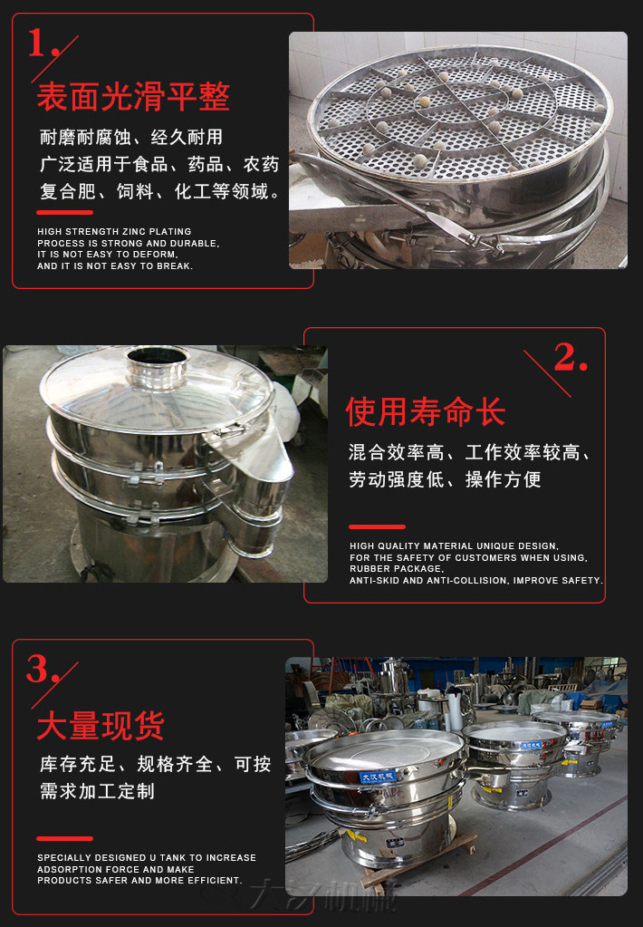 1、304不銹鋼材質,符合糯米粉篩分的食品標準;