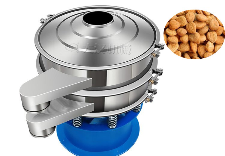 杏仁旋振篩與杏仁接觸部分采用304食品不銹鋼材質(zhì),用于去除和杏仁混在一起的杏仁殼以及砸核過(guò)程中被壓碎的碎果仁。