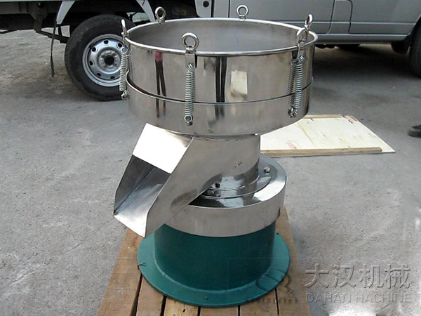 450型過濾篩采用立式振動(dòng)電機(jī)為振動(dòng)源,立式振動(dòng)電機(jī)上、下兩端裝有偏心重錘,可產(chǎn)生水平、垂直、傾斜的三次元運(yùn)動(dòng),然后將運(yùn)動(dòng)傳遞到篩分表面達(dá)到優(yōu)良分級。通過調(diào)節(jié)上、下偏心重錘的相位角,可改變物料在篩面上的運(yùn)動(dòng)軌跡,保證物料充分分級。