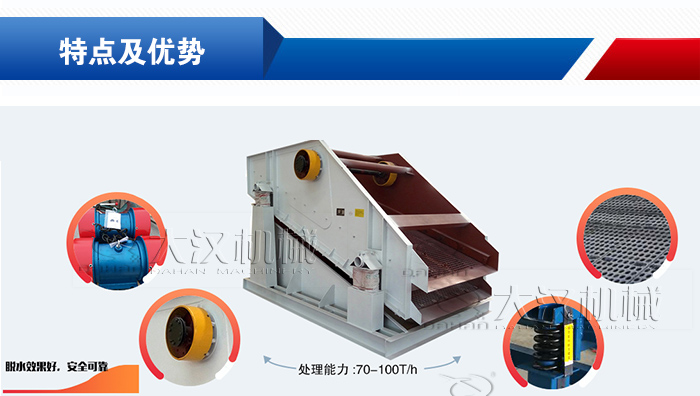 脫水振動篩,簡稱脫水篩,由于其運動軌跡為直線,所以又稱為直線脫水篩。其運動軌跡為直線,是根據(jù)JB2444-86《ZSM型煤用座式雙軸振動篩》標準和QJ/AK02.06-89《DSM型煤用吊式雙軸振動篩》生產(chǎn)的。脫水篩主要針對細粒物料的脫水、脫泥、脫介,可用于砂石料廠水洗砂、選煤廠煤泥回收、選礦廠尾礦干排等,因此也叫砂石脫水篩、礦用脫水篩、煤泥脫水篩、尾礦脫水篩等。篩機處理能力大,篩分效率高。