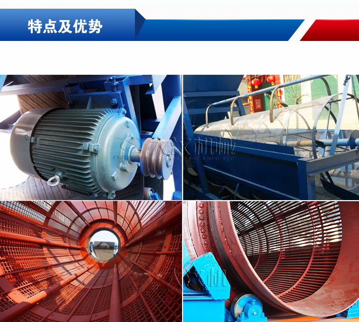 滾筒篩篩沙機(jī)簡(jiǎn)稱滾筒篩,是通過對(duì)顆粒粒徑大小來控制垃圾分選的,分選精度高,克服了各種振動(dòng)篩在篩分較濕物料時(shí)出現(xiàn)的篩網(wǎng)粘堵問題,提高了篩分系統(tǒng)的產(chǎn)量和可靠性。滾筒篩篩沙機(jī)廣泛用于電廠、焦化廠、建材、冶金、化工、礦山等行業(yè),適合對(duì)煤、煤矸石、焦炭生熟石灰等潮濕易堵塞物料進(jìn)行分級(jí)和除雜,篩下產(chǎn)品大100mm,中間10-50mm,細(xì)可達(dá)3mm以下。