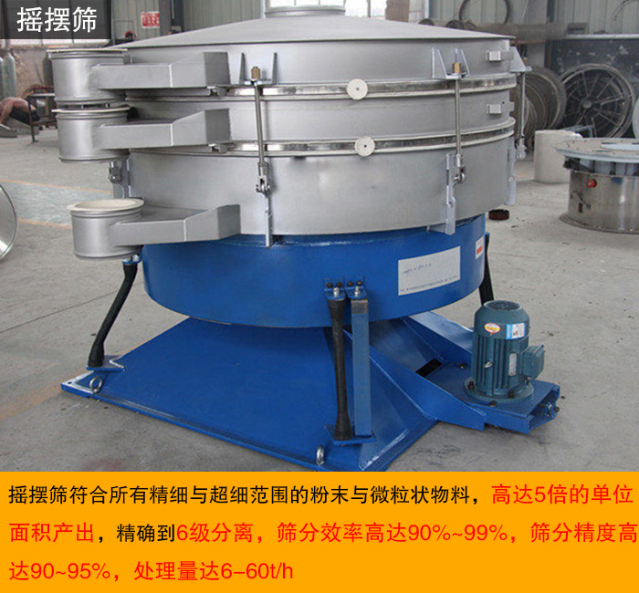 搖擺篩符合所有精細與超細范圍的粉末與微粒狀物料,高達5倍的單位面積產(chǎn)出,6級分離,篩分效率高達90%~99%,篩分精度高達90~95%,處理量達6-60t/h,另外,新鄉(xiāng)大漢搖擺篩配備有橡膠球、超聲波等高效清網(wǎng)裝置,篩孔不易堵塞。大漢還有篩分效率高、處理量大的高效篩選設備—方形搖擺篩,其產(chǎn)量可高達100t/h。