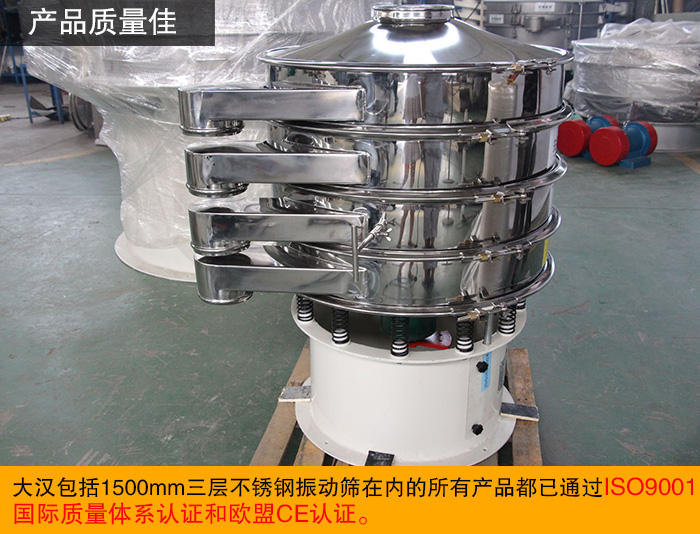 大漢生產(chǎn)出來的每一臺不銹鋼振動篩均采用先進的生產(chǎn)工藝、精湛的焊接工藝制造而成,大漢從選材的精良,到技術(shù)的革新,再到做工的精湛,再到成品的嚴格檢查,對每一環(huán)節(jié)都牢牢監(jiān)控,。目前,大漢包括1500mm三層不銹鋼振動篩在內(nèi)的所有產(chǎn)品都已通過ISO9001國際質(zhì)量體系認證和歐盟CE認證。