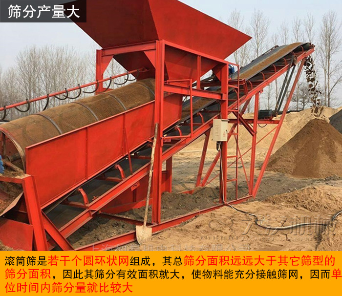 滾筒篩是若干個(gè)圓環(huán)狀網(wǎng)組成,其總篩分面積遠(yuǎn)遠(yuǎn)大于其它篩型的篩分面積,因此其篩分有效面積就大,使物料能充分接觸篩網(wǎng),因而單位時(shí)間內(nèi)篩分量就比較大。又因?yàn)闈L筒篩結(jié)構(gòu)簡(jiǎn)單,布置方便,技術(shù)新穎而成熟等特點(diǎn),極易大型化。