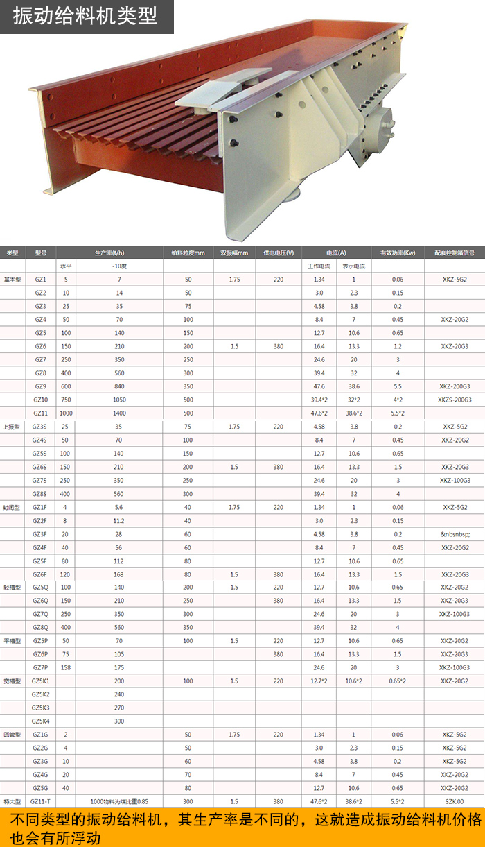 不同類型的振動給料機,其生產(chǎn)率是不同的,這就造成振動給料機價格也會有所浮動。振動給料機類型分為基本型、上振式型、封閉型、輕槽型等諸多類型,不同類型的振動給料機又有不同型號,所以直接導(dǎo)致振動給料機價格不一。