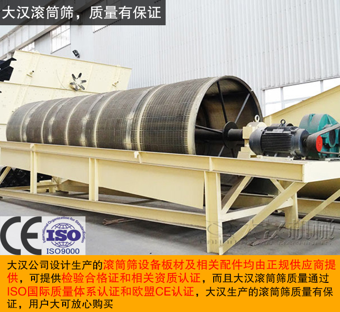 用戶再選購(gòu)滾筒篩時(shí)注重的就是質(zhì)量,因?yàn)闈L筒篩質(zhì)量的好壞直接影響成品物料的質(zhì)量。大漢是一家擁有20多年生產(chǎn)經(jīng)驗(yàn)的振動(dòng)篩生產(chǎn)廠家,一直致力于振動(dòng)篩分設(shè)備的設(shè)計(jì)、研發(fā)工作,從設(shè)計(jì)到調(diào)試全程監(jiān)控,確保設(shè)備高質(zhì)量的同時(shí)又能符合用戶的生產(chǎn)要求。大漢公司設(shè)計(jì)生產(chǎn)的滾筒篩設(shè)備板材及相關(guān)配件均由正規(guī)供應(yīng)商提供,可提供檢驗(yàn)合格證和相關(guān)資質(zhì)認(rèn)證,而且大漢滾筒篩質(zhì)量通過ISO國(guó)際質(zhì)量體系認(rèn)證和歐盟CE認(rèn)證,大漢生產(chǎn)的滾筒篩質(zhì)量有保證,用戶大可放心購(gòu)買。