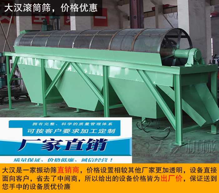對(duì)于投資滾筒篩的客戶來說,價(jià)格是關(guān)鍵,而要買到質(zhì)優(yōu)價(jià)廉的滾筒篩,廠家很關(guān)鍵。大漢是一家振動(dòng)篩直銷商,價(jià)格設(shè)置相較其他廠家更加透明,設(shè)備直接面向客戶,省去了中間商,所以給出的設(shè)備價(jià)格皆為出廠價(jià),保證送到您手中的設(shè)備質(zhì)優(yōu)價(jià)廉。