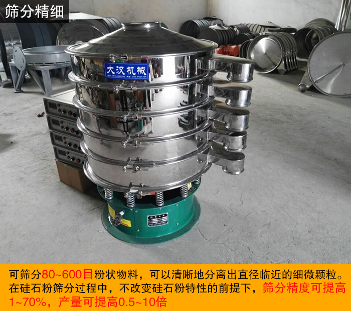硅石粉主要用于玻璃、陶瓷、耐火材料、冶金、建筑、化工、橡膠、涂料等行業(yè),應(yīng)用較為廣泛,篩分硅石粉選擇哪種振動篩好呢?大漢廠家推薦您使用超聲波振動篩。