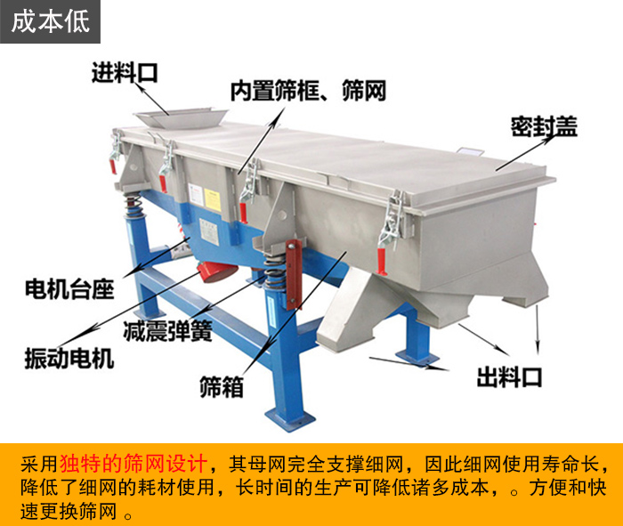 直線振動(dòng)篩作為為常見的一種振動(dòng)篩,采用獨(dú)特的篩網(wǎng)設(shè)計(jì),其母網(wǎng)完全支撐細(xì)網(wǎng),因此細(xì)網(wǎng)使用壽命長(zhǎng),降低了細(xì)網(wǎng)的耗材使用,長(zhǎng)時(shí)間的生產(chǎn)可降低諸多成本,方便和快速更換篩網(wǎng) 。