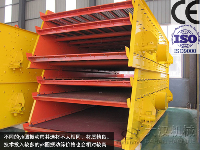 不同的yk圓振動(dòng)篩其選材不太相同,材質(zhì)精良、技術(shù)投入較多的yk圓振動(dòng)篩價(jià)格也會(huì)相對(duì)較高,yk圓振動(dòng)篩的各部件也會(huì)影響其價(jià)格,振動(dòng)篩的各個(gè)部件構(gòu)成了振動(dòng)篩的主體,振動(dòng)篩的篩網(wǎng)、振動(dòng)電機(jī)等各部件的質(zhì)量也會(huì)對(duì)yk圓振動(dòng)篩的價(jià)格產(chǎn)生影響。大漢yk圓振動(dòng)篩質(zhì)量有保證,已通過ISO9001國際質(zhì)量體系認(rèn)證和歐盟CE認(rèn)證。