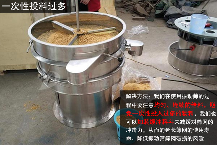 篩網(wǎng)的主要是對(duì)物料進(jìn)行篩分。如果一次性投入過多的物料在篩面上,會(huì)加重篩網(wǎng)的負(fù)荷,造成篩網(wǎng)的破損。