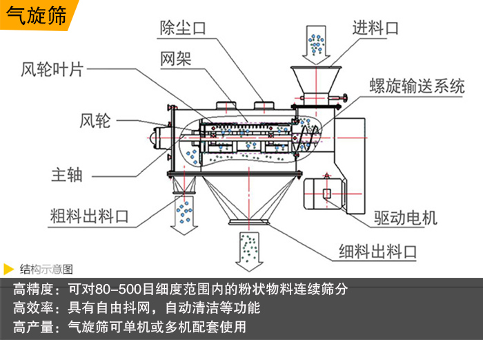 ③高產(chǎn)量:氣旋篩可單機或多機配套使用、長時間運行,處理量大。