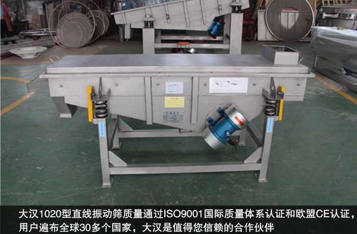 大漢在豐富的生產(chǎn)經(jīng)驗(yàn)上和成熟的技術(shù)工藝上,始終堅(jiān)持把握產(chǎn)品的合理定位,對(duì)于設(shè)備生產(chǎn)、加工、裝配等環(huán)節(jié)進(jìn)行層層監(jiān)控,以確保優(yōu)質(zhì)的產(chǎn)品質(zhì)量,大漢1020型直線振動(dòng)篩質(zhì)量通過(guò)ISO9001國(guó)際質(zhì)量體系認(rèn)證和歐盟CE認(rèn)證,用戶遍布全球30多個(gè)國(guó)家,大漢是值得您信賴的合作伙伴。