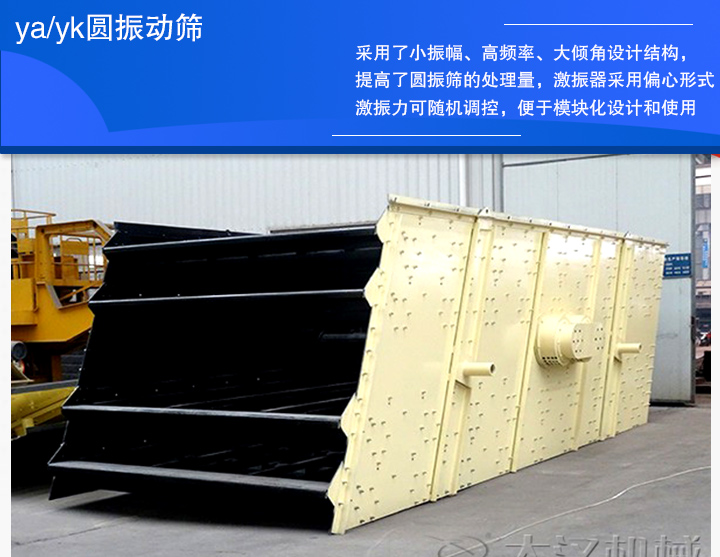YA/YK圓振動篩采用了小振幅、高頻率、大傾角設(shè)計結(jié)構(gòu),可以通過改變傾角去改變物料沿篩面的運動速度,從而提高了圓振篩的處理量,YA/YK圓振動篩激振器采用偏心形式,不僅使激振器偏心質(zhì)量單重激振力增大,而且激振力可隨機調(diào)控,便于模塊化設(shè)計和使用。