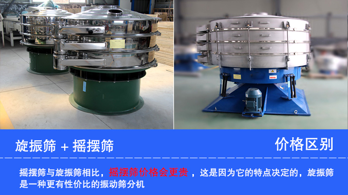 搖擺篩與旋振篩相比,搖擺篩價(jià)格會(huì)更貴 ,這是因?yàn)樗奶攸c(diǎn)決定的,旋振篩是一種更有性?xún)r(jià)比的振動(dòng)篩分機(jī)。