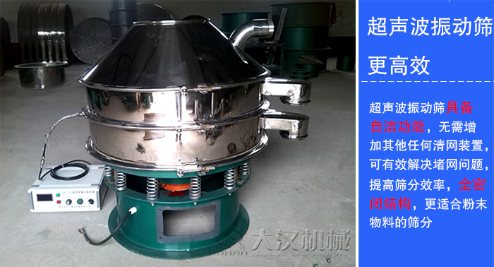 超聲波振動(dòng)篩具備自潔功能,無需增加其他清網(wǎng)裝置,可有效解決堵網(wǎng)問題,提高篩分效率,全密閉結(jié)構(gòu),更適合粉末物料的篩分。