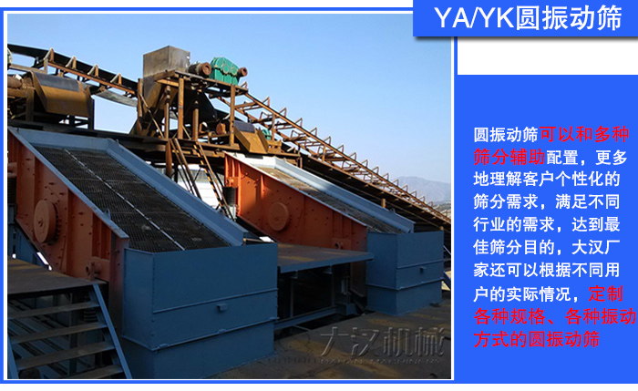 圓振動(dòng)篩可以和多種篩分輔助配置,更多地理解客戶個(gè)性化的篩分需求,滿足不同行業(yè)的需求,達(dá)到佳篩分目的,大漢廠家還可以根據(jù)不同用戶的實(shí)際情況,定制各種規(guī)格、各種振動(dòng)方式的圓振動(dòng)篩。
