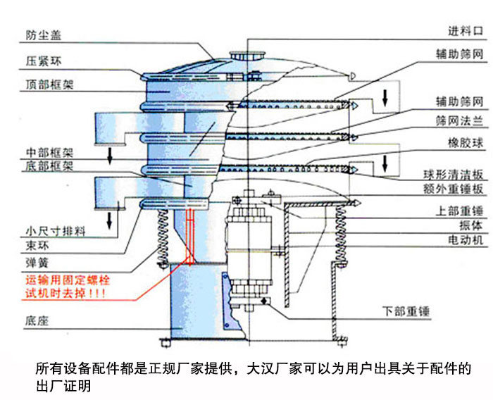 新鄉(xiāng)大漢在振動(dòng)篩設(shè)備配件的選擇上杜絕以次充好,所有設(shè)備配件都是正規(guī)廠家提供,大漢廠家可以為用戶(hù)出具關(guān)于配件的出廠證明。