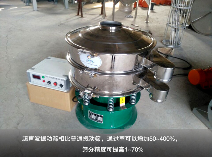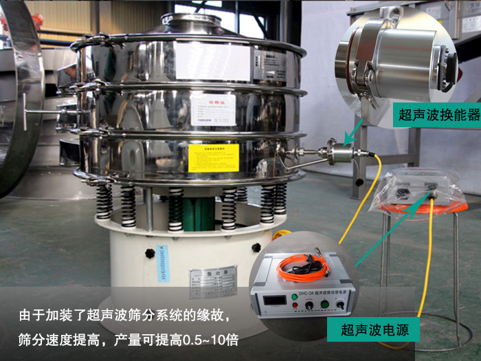 由于超聲波振動(dòng)篩有一個(gè)高頻率低振幅的超聲振動(dòng)波,使得麥芽粉在篩分過(guò)程中保持懸浮狀態(tài),減少因麥芽粉團(tuán)聚、粘附性等造成的堵網(wǎng)現(xiàn)象,從而增加物料的篩分精度,一般情況下,超聲波振動(dòng)篩相比普通振動(dòng)篩,通過(guò)率可以增加50~400%,篩分精度可提高1~70%。