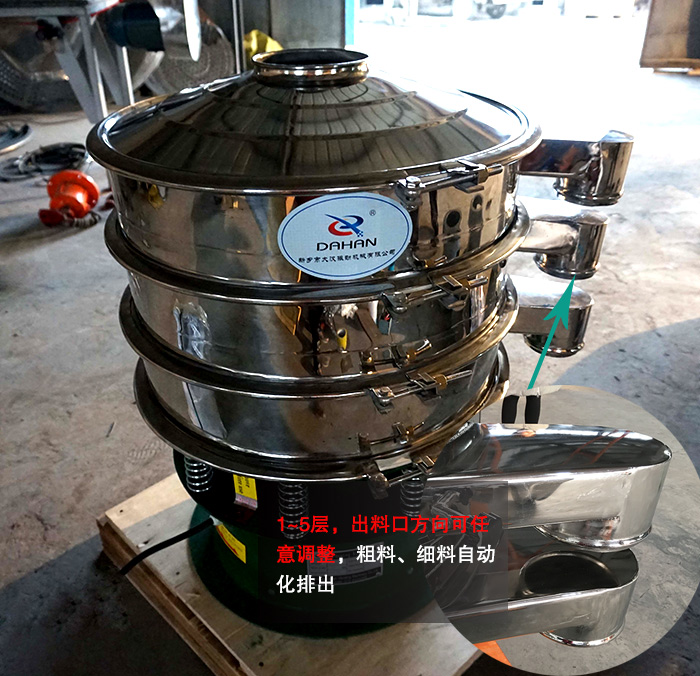 不銹鋼振動(dòng)篩篩面層數(shù)有1~5層,出料口方向可任意調(diào)整,粗料、細(xì)料自動(dòng)化排出,篩分更高效。