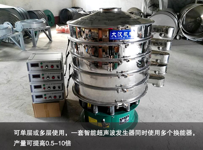大漢超聲波振動篩可單層或多層使用,一套智能超聲波發(fā)生器同時使用三個換能器,產(chǎn)量可提高0.5-10倍。