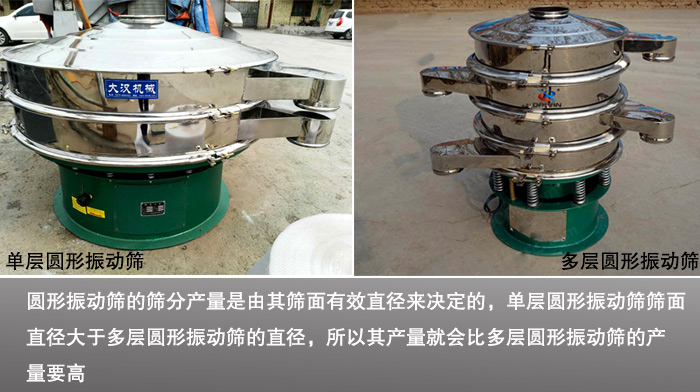 眾所周知,圓形振動篩的篩分產(chǎn)量是由其篩面有效直徑來決定的,單層圓形振動篩篩面直徑大于多層圓形振動篩的直徑,所以其產(chǎn)量就會比多層圓形振動篩的產(chǎn)量要高。