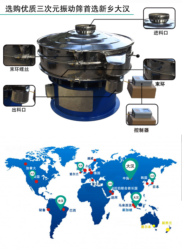新鄉(xiāng)大漢三次元振動篩可以篩分細(xì)至500目或或0.028mm的顆粒,過濾500目漿液,1~5層設(shè)計(jì),可以滿足不同用戶的篩分需求,可以保證用戶的生產(chǎn)效益。