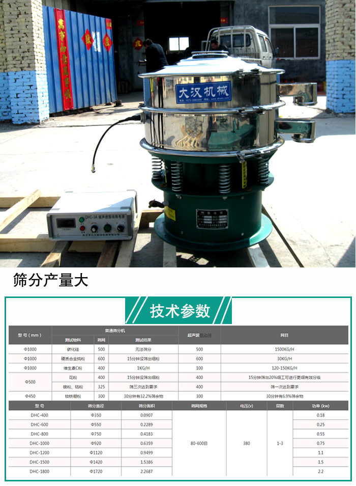 旋振篩用100目篩網(wǎng)篩分氧化鋁,每小時的處理量可達30kg左右,而使用超聲波振動篩使用200目篩網(wǎng)篩分氧化鋁粉,每小時產(chǎn)量可達900kg左右。由此可見超聲波振動篩篩分產(chǎn)量大,效果更好。