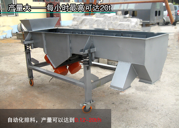直線振動(dòng)篩篩面層數(shù)高可達(dá)5層,用戶可以根據(jù)篩分產(chǎn)量的大小選擇合適層數(shù)的直線振動(dòng)篩。另外,直線振動(dòng)篩可以自動(dòng)化排料,產(chǎn)量可以達(dá)到0.12~20t/h。