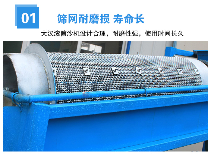 大漢滾滾筒沙機設(shè)計合理,采用滾筒傳送的原理,使得沙子在滾筒內(nèi)不停的翻滾且不會與發(fā)生摩擦,耐磨性強,使用時間長久。