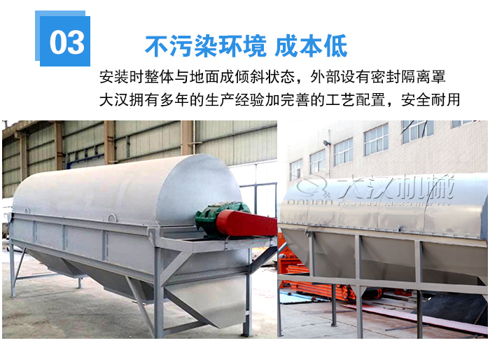 該滾筒篩篩沙機安裝時整體與地面成傾斜狀態(tài),外部設(shè)有密封隔離罩,在篩沙時,不會對環(huán)境造成污染。由于大漢擁有多年的生產(chǎn)經(jīng)驗的工藝配置,用戶在使用過程中安全耐用,故障率極低,所以節(jié)約了成本,提高了經(jīng)濟效益。