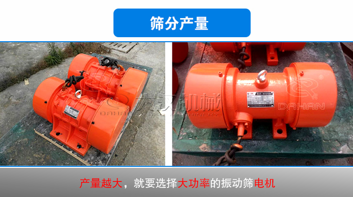 選擇一臺(tái)好的振動(dòng)篩要綜合看整機(jī)的配置,而不是單一的去看電機(jī)功率,大漢機(jī)械專業(yè)生產(chǎn)各類振動(dòng)篩與振動(dòng)電機(jī),并承接特殊型號(hào)的設(shè)計(jì)與制作,歡迎用戶隨時(shí)前來咨詢。