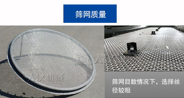 一般來說,為了保證大網(wǎng)目振動篩篩網(wǎng)的耐用性,我們在圓形振動篩上多使用一種叫“子母式”的網(wǎng)架結(jié)構(gòu),即由上面的承擔(dān)篩分工作的母網(wǎng)和下面用于承托母網(wǎng)的粗絲徑子網(wǎng)構(gòu)成,因此我們需要的是確定母網(wǎng)的目數(shù)和絲徑.