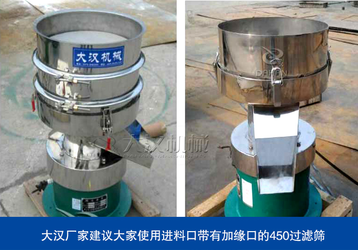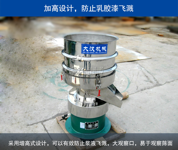 乳膠漆是一種帶有一定粘稠度的漿液,但是在其進(jìn)行加工過程中,需要使用振動篩對其進(jìn)行除雜過濾,由于考慮到乳膠漆在篩分過程中可能發(fā)生的漏液、飛濺情況,大漢廠家建議大家使用使用進(jìn)料口帶有加緣口的450過濾篩進(jìn)行篩分。