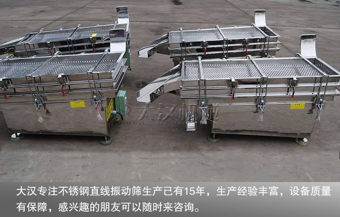 以上是對“食品廠不銹鋼直線振動篩選型標準”的介紹,選購不銹鋼直線振動篩也需從以上四個方面進行參考。大漢專注不銹鋼直線振動篩生產(chǎn)已有15年,生產(chǎn)經(jīng)驗豐富,設(shè)備質(zhì)量有保障,感興趣的朋友可以隨時來咨詢。