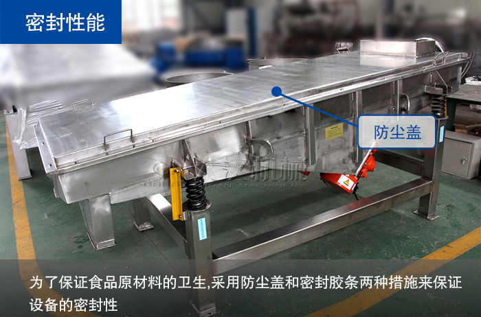 為了保證食品原材料的衛(wèi)生情況,振動篩選機必須具有良好的密封性,這樣一方面能夠防止物料逸散造成資源浪費,一方面也能杜絕因粉末物料的逸散造成同一車間的多種物料相互污染,影響生產(chǎn)進程。一般合格的食品振動篩會采用防塵蓋和密封膠條兩種措施來保證設(shè)備的密封性。