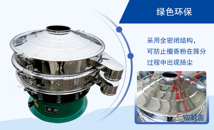 旋振篩采用全密閉結構,可防止檀香粉在篩分過程中出現(xiàn)揚塵等現(xiàn)象,降低了對環(huán)境的污染。