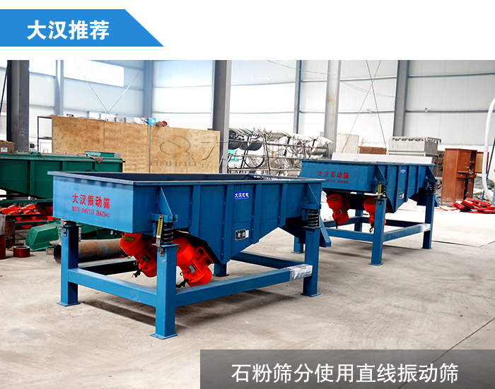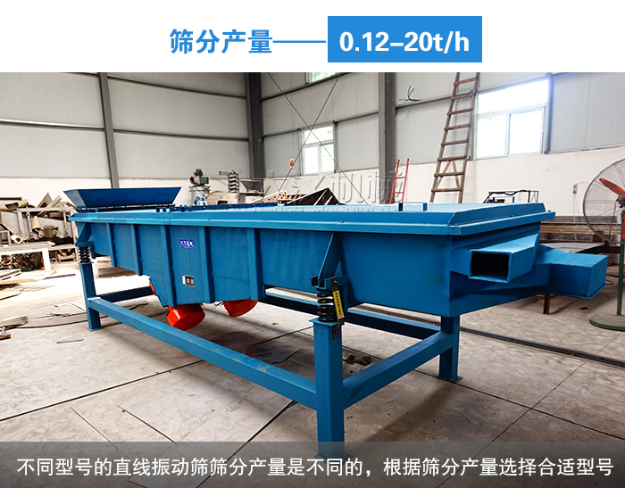 不同型號的直線振動篩篩分產(chǎn)量是不同的,用戶可以根據(jù)篩分產(chǎn)量的大小選擇合適層數(shù)的石粉直線篩,大漢直線振動篩可以自動化排料,產(chǎn)量可以達到0.12~20t/h,在對石粉進行批量化生產(chǎn)時很是實用。