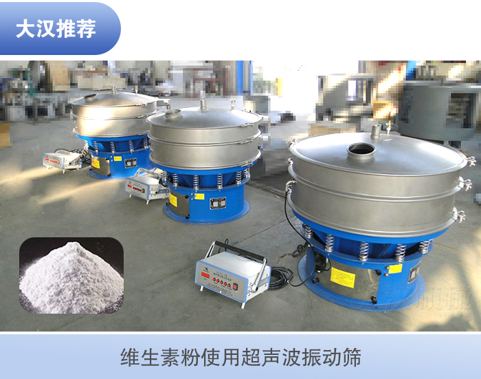 維生素粉屬于醫(yī)藥范圍,在選擇振動(dòng)篩要選擇符合衛(wèi)生標(biāo)準(zhǔn),維生素精細(xì)目數(shù)偏細(xì),為了更好的把控維生素的粒徑大小,對(duì)維生素粉顆粒進(jìn)行大小分級(jí),將其中不符合質(zhì)量要求的粗料、細(xì)粒進(jìn)行篩除,就建議使用超聲波振動(dòng)篩。