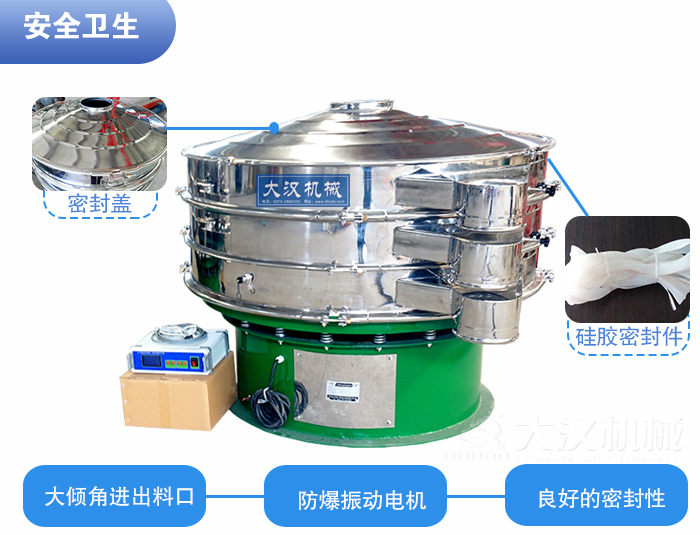 為了保證原材料的衛(wèi)生情況,維生素粉超聲波振動(dòng)篩要具有良好的密封性,密封件全部采用食品硅膠,網(wǎng)架采用潔凈型粘接網(wǎng)架。減震彈簧部分由不銹鋼圍裙包裹;振動(dòng)電機(jī)可定制為更為安全的防爆振動(dòng)電機(jī),確保生產(chǎn)安全??紤]到消毒清洗的性和簡(jiǎn)便性,超聲波振動(dòng)篩的出料口、進(jìn)料口設(shè)計(jì)需要采用大傾角設(shè)計(jì),更利于清洗和消毒。