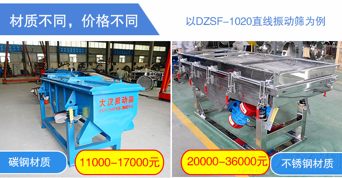 直線振動篩材質(zhì)分為碳鋼和不銹鋼兩種材質(zhì),碳鋼沒有特意添加合金元素的鋼材,不銹鋼是為了防銹而添加高合金含量的鋼材,碳鋼通常比不銹鋼的強(qiáng)度更高,但容易生銹,所以碳鋼材質(zhì)的直線振動篩會比不銹鋼材質(zhì)的更加便宜。關(guān)于直線振動篩材質(zhì)的選擇,主要由物料篩分環(huán)境進(jìn)行選擇。以DZSF-1020直線振動篩為例,碳鋼材質(zhì)的價格在11000-17000元之間,不銹鋼材質(zhì)的價格在20000-36000元之間。