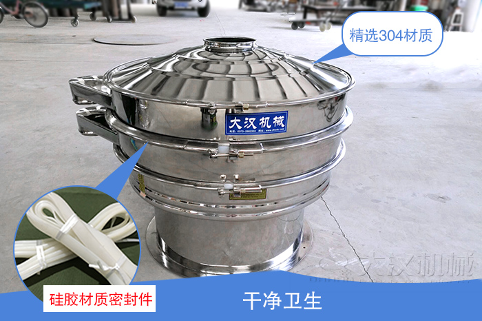 所以食品安全尤為重要,廠家制粉可選用標準型旋振篩(圓形篩)進行篩選,要求接觸物料部位為304材質(zhì)或全304材質(zhì),其振動篩內(nèi)部配件也許選用符合食品衛(wèi)生安全的硅膠材質(zhì)密封配件。