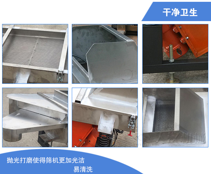 不銹鋼直線振動(dòng)篩篩體采用不銹鋼材質(zhì)制成,經(jīng)過技術(shù)工人的拋光打磨使得篩機(jī)更加光潔,在篩分過程中不會(huì)造成物料交叉污染,而且在使用設(shè)備之后更易清洗,符合食品行業(yè)衛(wèi)生要求。