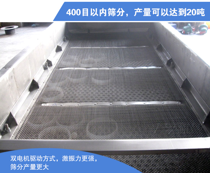 不銹鋼直線振動(dòng)篩可以將蠶豆篩分至400目,篩分效率可以達(dá)到96%以上,另外,還可以通過加裝硅膠材質(zhì)的彈跳球來達(dá)到清網(wǎng)的目的,雙電機(jī)驅(qū)動(dòng)方式,激振力更強(qiáng),篩分產(chǎn)量更大,一般情況下,大漢不銹鋼直線振動(dòng)篩一小時(shí)可處理0.12-20噸的物料,具體產(chǎn)量依據(jù)用戶實(shí)際選型。