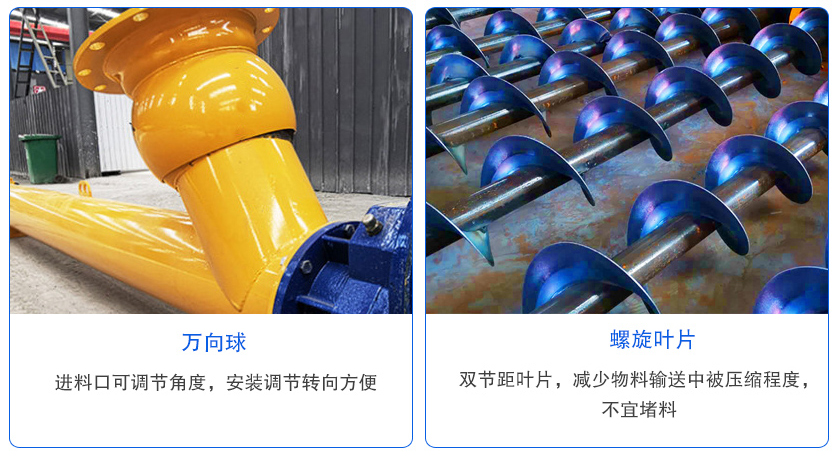 水泥螺旋輸送機(jī)區(qū)別于普通螺旋輸送機(jī)的結(jié)構(gòu)主要在于管體的萬向球以及變距螺旋葉片上。