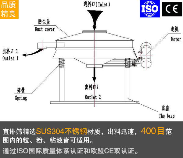 大漢公司以優(yōu)良的產(chǎn)品質(zhì)量,得到國內(nèi)外各界企業(yè)的鼎力支持與信任,并且建廠十余年中,擁有豐富的生產(chǎn)經(jīng)驗,憑借著對設(shè)備質(zhì)量的嚴格把關(guān),獲得了業(yè)內(nèi)外朋友的一致好評。產(chǎn)品均已通過ISO9001國際質(zhì)量體系認證和歐盟CE雙認證,產(chǎn)品設(shè)備已遠銷至海外30多個國家(如德國,意大利等),用戶可以放心購買。大漢直排篩精選SUS304不銹鋼材質(zhì),物料在篩機中停留時間短,出料迅速,400目范圍內(nèi)的粒、粉、粘液皆可適用。